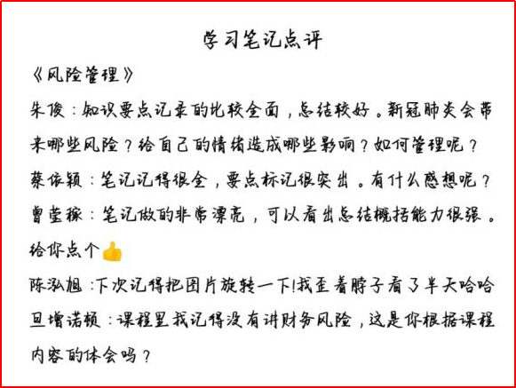 课程结束后,杨老师认真批阅了同学们的学习笔记,并对每一份笔记做出了详实的评价和指导,评语精炼却一语中的,为员工们今后的努力指明方向。