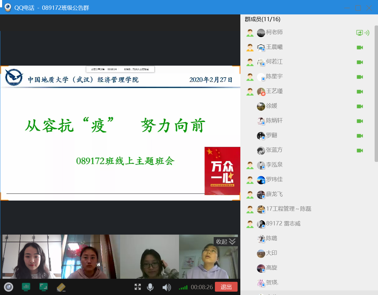 【抗击疫情| 主题班会】从容抗“疫”,努力向前——089172班云端相聚