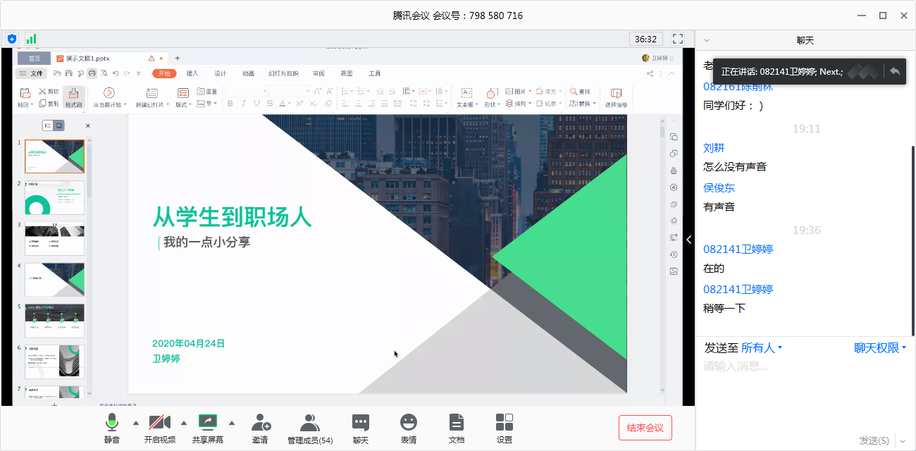 参加活动的同学们对各位老师的谆谆教导纷纷表达感激之情。至此,主持人宣布活动,腾讯会议室的人数却基本没有变化,毕业生们对地大、对经管的依依不舍,对工商系老师们的恋恋不舍场面,一时让人十分感动。