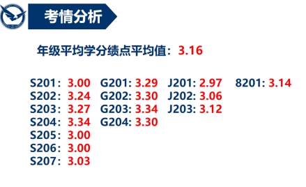 随后,她带领大家从平均学分绩点、各班挂科情况、单科成绩等方面全面分析了期末成绩。上学期期末考,2020级平均学分绩点的平均值为3.16,徐老师对大家取得的良好成绩给予了肯定。15个班级里,14个班的平均学分绩点在3.0以上,G202班为无挂科班级。在场同学都自发为无挂科班级鼓掌。