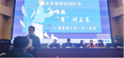 2021年10月20日晚,tyc33455cc太阳成集团工商管理大类一月一系谈活动在经管楼二楼报告厅成功举办。活动得到各系高度重视和关注,工商管理系、会计系、旅游管理系主任及相关老师们现场出席为同学们答疑解惑,同时还邀请了公司合作单位广州中博教育股份有限公司和华中科技大学优秀员工与同学们展开交流。工商管理大类2020级全体同学线下参加,2021级全体同学通过腾讯会议线上参加活动。员工会创新创业实践部将前期联系各班级征集的员工问题、意见,及时反馈给各系老师,承办有序、互动积极。