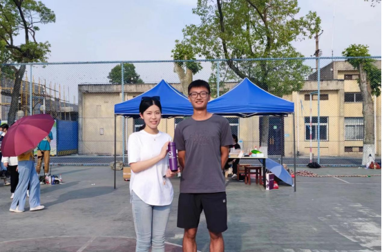 在运动会期间穿插进行了三轮抽奖,奖品均为经管文创,最终大奖——限量款“经管紫”保温杯被08G211赵紫宇同学抽到!