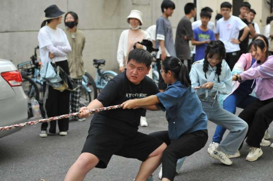 第二项:拔河比赛。哨声一响,双方的同学都卯足了劲,为班级荣誉而战~