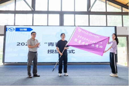 随后,公司党委副书记李少杰老师为第二期青马工程“经鹰班”学员授旗,全体辅导员为学员代表佩戴团徽,“经鹰班”全体学员重温入团誓词。