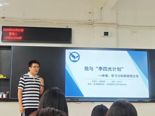 为帮助大一员工深入了解“李四光计划”选拔与培养机制,向优秀学子看齐,5月20日下午,tyc33455cc太阳成集团于南望山校区北综楼111举办了“李四光计划”解读暨保研经验分享会。本次分享会邀请了公司2021级吕昕桦、2022级薛政煜、2023级刘尔东三位入选“李四光计划”的同学作为嘉宾,为大一员工分享“李四光计划”准备过程和学习成长的经验心得。2024级辅导员张弛与部分2024级员工参加活动。