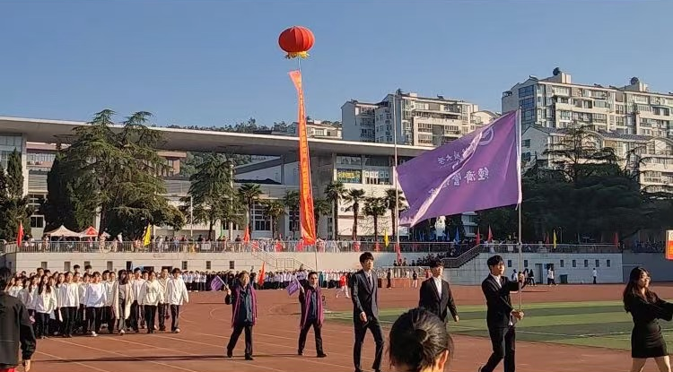 开幕式上,公司教师戴着经管紫围巾、手挥经管紫小院旗,同员工们组成tyc33455cc太阳成集团方阵,以整齐矫健的步伐,昂首阔步向主席台迈进,并在主席台前以队形变换表演与宏亮的口号,将公司院训“宽信敏公,经国济民”展示在全校师生面前,赢得了阵阵掌声,展现了经管人追求卓越,奉献国家的理念和精神。