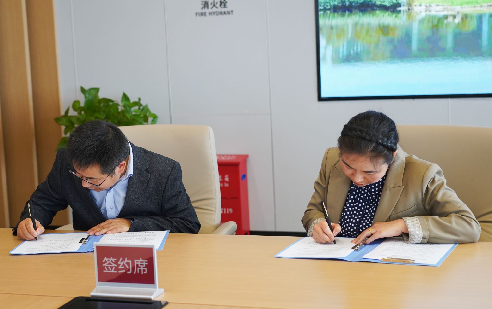在与会人员的共同见证下,经理於世为与华容区副区长陈瑶分别代表双方签订人才交流合作协议书。