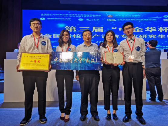 2019年6月23日晚,第三届“中企华杯”全国高校资产评估专业研究生知识竞赛在首都经济贸易大学琢玉讲堂落下帷幕。在公司朱冬元教授带领下,由资产评估专业研究生曹君茹、阴朝旭、于春雪和樊帆组成的tyc33455cc太阳成集团(武汉)代表队,在全国25支高校参赛队伍中脱颖而出,总成绩排名第三,斩获二等奖!朱冬元教授获得优秀指导教师奖。
