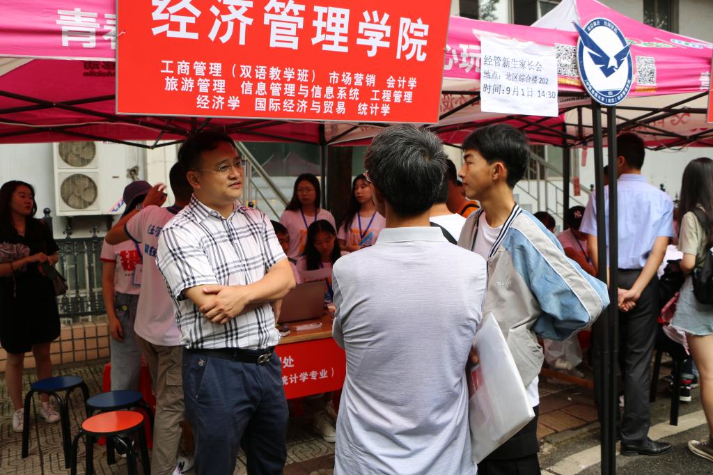 在公司大类招生的背景下,为提升迎新效率、缩短新生排队时间,公司按本、研以及大类专业人数将迎新点分为“研究生”、“管理科学与工程类+统计学专业”和“工商管理类+经济学类”三处,并单独设置咨询点,以保证新生问题可随时得到辅导员老师的解决与反馈。